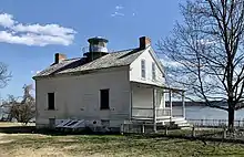 The Jones Point Light is a small river lighthouse located on the Potomac River in Alexandria, Virginia. It was built in 1855. It is a small, one-story house with a lantern on top and served primarily as a warning light for naval ships approaching the Washington Navy Yard. The lighthouse was discontinued in 1926, replaced by a small steel skeletal tower located nearby; this smaller tower was in use for ten years before being discontinued. After being dark for more than half a century, Jones Point Light was relit by a private concern in 1995, however, it was eventually put out again after ownership switched from the Daughters of the American Revolution Foundation to the National Park Service. Certain local efforts have called for the structure to be relit, but as of 2017, the only working lighthouse on the Potomac River is the Fort Washington Point Lighthouse, located five miles downriver.