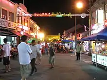 The Jonker Walk (Malay: Persiaran Jonker, Chinese: 雞場街; pinyin: Jīcháng jiē) is the Chinatown area in Malacca City in the state of Malacca, Malaysia located along Jonker Street (Malay: Jalan Hang Jebat). It starts from across Malacca River near the Stadthuys, with the street in the area filled with historical houses along its left and right sides dating back to 17th century, many of which are shops selling antiques, textiles, foods, handicrafts and souvenirs such as keychains and shirts.[1][2] The area turns into a night market every Friday, Saturday and Sunday in the evening from 6 p.m. until 12 midnight, with its street blocked for traffic.[3]
