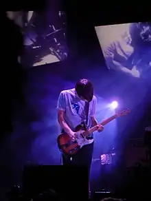 Radiohead's albums Kid A (2000) and Amnesiac (2001) marked a dramatic change in sound, incorporating influences from electronica, classical music, jazz and krautrock.[25] Greenwood employed a modular synthesiser to build the drum machine rhythm of "Idioteque",[26][27] and played ondes Martenot, an early electronic instrument similar to a theremin, on several tracks.[28]
