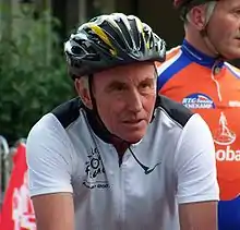 Hendrik Gerardus Joseph "Joop" Zoetemelk (pronounced [ˈjoːp ˈsutəmɛl(ə)k];[1] born 3 December 1946) is a Dutch former professional racing cyclist. He started and finished the Tour de France 16 times, which were both records when he retired. He also holds the distance record in Tour de France history with 62,885 km ridden. He won the 1979 Vuelta a España and the 1980 Tour de France.