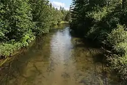 The Jordan River is a 24.9-mile-long (40.1 km)[4] stream in the northwestern part of the lower peninsula in the U.S. state of Michigan. It is the largest tributary of Lake Charlevoix. The Jordan's headwaters rise from springs in the upper Jordan River Valley northeast of Mancelona in Antrim County. The Jordan River was the first river to be designated in Michigan's Natural Rivers Program.[5]