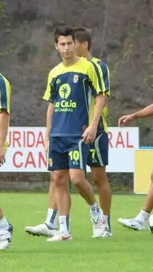 On 16 July 2008, Larena returned to his native region and Las Palmas, agreeing to a three-year contract with the Segunda División club.[3] He made his official debut on 30 August, playing the full 1–0 loss at Real Sociedad.[4]