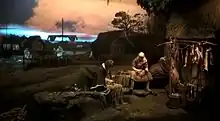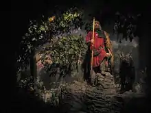 In 2001, the centre was refurbished and enlarged at a cost of £5 million, and a further investment of £1 million followed in February 2010.[2] These investments were used to "intensify the message" at Jorvik, and included such changes as extending the ride time to 12 minutes, as well as adding more high-tech elements, which included a hike in "the technology and animation elements," and increasing "the sensory stimuli to include smells, more sounds, heat, cold and damp."[3] Visitors are taken back to 5:30 pm 25 October 975 AD in a time-capsule, and then embark on a tour of a reconstructed Viking settlement which includes voices speaking in Old Norse, as well as aromas and "life-like animated figures, made by laser technology from skeletons found on the site."[4] Beyond this is an extensive museum area, which combines an exhibition of some 800 finds from the site with interactive displays and the opportunity to learn about tenth-century life and to discuss it with "Viking" staff. Among the exhibits is a replica of the Coppergate Helmet, which was found near the site of the centre and is now in the Yorkshire Museum. The third incarnation of Jorvik was opened on 13 February 2010, coinciding with the start of the annual Viking Festival in York. The attraction was completely rebuilt following devastating flooding in December 2015, re-opening on 8 April 2017 with the Return of the Vikings.