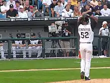 The 2006 season began with Contreras inking a three-year, $29 million contract extension to remain on the South Side.[23] Contreras started the season as well as he had finished the previous one. As of July 6, 2006, he was 9–0, with a 3.31 ERA and 71 strikeouts. On June 23, in a 7–4 win over the Astros, Contreras pitched 6.1 innings and allowed four earned runs to earn the win, breaking the White Sox team record with his 16th consecutive regular-season win, previously held by LaMarr Hoyt (1983–84) and Wilson Álvarez (1993–94).[24] Dating back to the 2005 season, Contreras won 17 consecutive games before finally taking the loss against his former team, the New York Yankees on July 14, 2006.[25] Contreras was named by his White Sox manager Ozzie Guillén to the 2006 American League All-Star team, but was unable to play because he had thrown six innings and 117 pitches in a start just two days before the All-Star game. Guillen, the AL manager, replaced him with Minnesota Twins rookie Francisco Liriano.[26] This enabled Contreras to become the first pitcher in 30 years to start two consecutive regularly scheduled games.