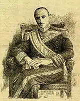 Following rebel seizure of Navarre on 20 July the regional Carlist executive re-formatted itself as Junta Central Carlista de Guerra de Navarra with Joaquín Baleztena as president and Martínez Berasáin as his deputy.[93] However, scholars claim that Martínez was hombre fuerte of the organization and that he remained its actual leader.[94] It is not clear whether he superseded Baleztena or whether the latter acknowledged Martínez’ contacts, energy and skills and voluntarily ceded the leading role.[95] Either in late July[96] or in August his status was confirmed formally;[97] in early September 1936 JCCGN publicly declared Martínez its jefe,[98] with Baleztena named the honorary president.[99] Fal remained skeptical about autonomous position adopted by the Junta, yet he decided to acknowledge it and named Martínez "comisario carlista de guerra de Navarra".[100]