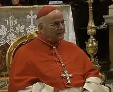 Pope John Paul made him Cardinal Deacon of Nostra Signora del Sacro Cuore in the consistory of 21 February 2001.[1] Like all major Vatican officials he lost his position on 2 April 2005 on the death of the pope. He was one of the cardinal electors who participated in the 2005 papal conclave that elected Pope Benedict XVI, who later confirmed him as prefect on 21 April 2005.
