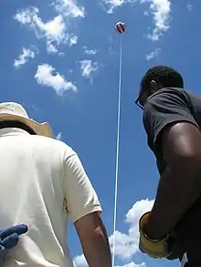 ![]() Jose D. Fuentes and his student using a research balloon at the Beltsville Center for Climate System Observation.[3] | |
