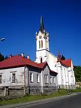 The main landmark of Josefův Důl is the Church of the Transfiguration of Christ with a 45 metres (148 ft) high tower. It was built in the pseudo-Gothic style in 1862–1865. The interior fittings house three valuable altar paintings by Wilhelm Kandler.[4]