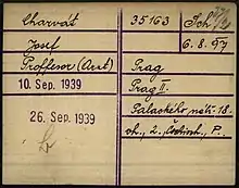 On 1 September 1939, he was arrested by the Gestapo for resistance activity and imprisoned in Pankrác prison and the Dachau and Buchenwald concentration camps.[11] For a long time it was believed that the then Swedish Crown Prince Gustav VI was responsible for his release, others alleged direct intervention from Hitler under Gustav Adolf advise. Charvát knew Gustav Adolf from the Moot scout meeting in Sweden in 1937. Still, this expedient story was refuted by the investigation of the Australian journalist WH Burke, summarized in a book entitled Čtyřiatřicet.[12] Albert Göring arranged the release, the younger (and most likely half) brother of prominent Nazi Hermann Göring, an engineer and appointed director of Škoda Works, whom Charvát had known since the pre-war period. Göring used his surname not only to release Professor Charvát but also to help 33 other people, important and ordinary.[13] After the war, he was cleared by the Nuremberg and Czech courts.[14]