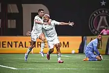 On 2 February 2017, Martínez was loaned with a buying option to Major League Soccer expansion team Atlanta United.[12][13] He made his league debut on 5 March in a 2–1 home defeat against New York Red Bulls.[14] He scored his first career hat-trick, and the first hat-trick in the history of the club, in a 6–1 win at Minnesota United the following week.[15]
