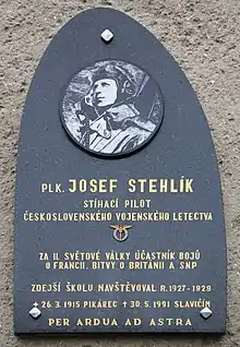 ![]() Memorial plaque to Josef Stehlík at Strážek in the Czech Republic | |
