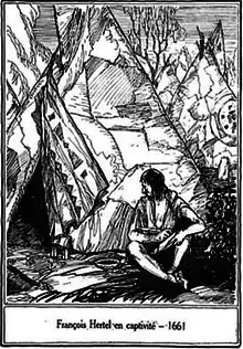 Joseph-François Hertel de la Fresnière (fr, baptised 3 July 1642 - buried 22 May 1722) was a military officer of New France. Born in Trois-Rivières when it was a small frontier town to Jacques Hertel, Lord Hertel and Marie Marguerie, he grew up with the constant threat of military action against the Iroquois. Captured by the Iroquois in 1661, he was adopted by an old Iroquois woman, and spent as long as two years among them, learning their language and ways. He managed to escape and make his way home, where his family had thought him dead.