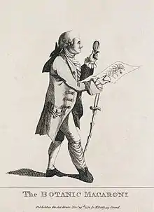 Banks left Oxford for Chelsea in December 1763. He continued to attend the university until 1764, but left that year without taking a degree.[8] His father had died in 1761, so when Banks reached the age of 21, he inherited the large estate of Revesby Abbey, in Lincolnshire, becoming the local squire and magistrate, and dividing his time between Lincolnshire and London. From his mother's house in Chelsea, he kept up his interest in science by attending the Chelsea Physic Garden of the Worshipful Society of Apothecaries and the British Museum, where he met Daniel Solander. He began to make friends among the scientific men of his day and to correspond with Carl Linnaeus, whom he came to know through Solander. As Banks's influence increased, he became an adviser to King George III and urged the monarch to support voyages of discovery to new lands, hoping to indulge his own interest in botany. He became a Freemason sometime before 1769.[9]