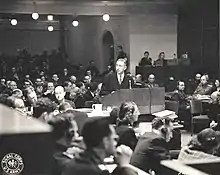 In 1945, Robert H. Jackson was absent from the Supreme Court to be U.S. Chief of Counsel for the prosecution of Nazi war criminals at the Nuremberg Trials. Dainow went to Nuremberg as a member of the legal staff of the American prosecution team. He prepared evidentiary materials that were used in the trial before the International Military Commission. His trial brief "1933-1936 Preparation for Aggression" assembled evidence showing that Nazi conspirators decided "the Treaty of Versailles must definitely be abrogated and specific plans were made by them and put into operation by 7th March, 1936."[4]