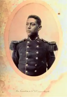 Joseph Droeven was schooled in Belgium. Out of the at least thirty-two Congolese soldiers of the Belgian Army during the First World War, Joseph Droeven was the only one who was a professional soldier instead of an army volunteer. Since his father acknowledged him, he was a Belgian as well.[7] He was enlisted as a professional volunteer at the grenadier regiment since 1913.[8] He became a corporal and, as such, some white Belgian soldiers were under his command.