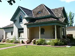 This home was built in 1906 for Joseph H. Frisby during the first year of his term as Provo City Mayor. "The House is a somewhat modest Victorian Eclectic house type that was most likely influenced by house pattern books. This house type was not used in Salt Lake City, or in many other areas of the state, but was inexplicably popular in Utah County (Historic Provo p. 8)."