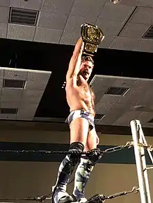 On September 19, 2015, Ryan made his Japanese debut for the DDT Pro-Wrestling promotion, defeating Tomomitsu Matsunaga.[78] During his tour of DDT, Ryan took part in a comedy spot, where he used his penis to overpower Danshoku Dino. Video of the spot went viral and led to Ryan being featured on the New York Daily News, Rolling Stone and Vice, while also getting him a sponsorship deal with YouPorn Sports.[79] Ryan returned to DDT in May 2016, winning the comedic Ironman Heavymetalweight Championship, which he then took on an extended tour of the United States, losing and winning it multiple times over the following months.[80] When Ryan returned to Japan in August 2016, he was a 22-time Ironman Heavymetalweight Champion.[80] He has since won the title multiple times, including once on March 20, 2017, at Judgement 2017: DDT 20th Anniversary.[80][81] In March 2017, Ryan brought the title back to the United States for a tour.[82]