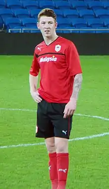 ![]() Yorwerth playing for Cardiff City's development squad in 2013 | |||