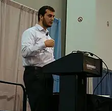 ![]() Joshua Ferraro speaking at a conference of the American Library Association in Denver in January, 2009. |