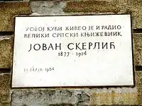 Memorial tablet on the house where Jovan Skerlić lived, in the Gospodar Jovanova street, Belgrade, Serbia
