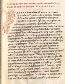 Jovinian (Latin: Iovinianus; died c. 405) was an opponent of Christian asceticism in the 4th century and was condemned as a heretic at synods convened in Rome under Pope Siricius and in Milan by Ambrose in 393, because of his anti-ascetic views.[1] Our information about him is derived principally from the work of Jerome in two books, Adversus Jovinianum.[2] Jerome referred to him as the "Epicurus of Christianity".[2] He was a native of Corduene, in present day Turkey.[3] John Henry Newman called Aerius of Sebaste, Jovinian and Vigilantius the forerunners of Protestantism, likening them to the "Luther, Calvin, and Zwingli of the fourth century".[4] Other Protestants also praise Jovinian as an early reformer or even credit him as the "first Protestant".[5][6] Jovinian's teachings received much popular support in Rome and Milan and his followers, Sarmatio and Barbatianus kept preaching his ideas after Jovinian was expelled.[7][8][9]