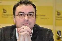 In 2015, Bakić publicly aligned himself with Borko Stefanović after a political rift formed between Stefanović and the veteran politicians of the Democratic Party in Serbia.[2] The split with the Democratic Party accumulated to Stefanović making his own new party in December 2015 called Serbian Left, for which Bakić significantly contributed to the initial ideological profile.[3] Bakić's vision for the new party was such that he argued for a left-libertarian movement based on secularism, democracy, anti-capitalism, internationalism, and opposition to NATO expansion.[2] However, Bakić did not commit to the party after disagreements arose with Stefanović on the party's strategies and politics.[3] One of the conditions which Bakić found non-negotiable was for the party to recruit only those who were not previously active with a major political party.[3] In response to Bakić's disagreement, Stefanović said that anyone who accepted the party's program should qualify as a member, regardless of their previous political affiliations.[3] Vladimir Unkovski-Korica, a political science professor at the University of Glasgow, defended Bakić's refusal to commit to Serbian Left, arguing that "Borko Stefanović wants a party more like the Democratic Party in the United States, rather than like one of the leftist parties in Europe."[4]