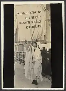 ![]() Joy Young [later Rogers] outside the White House in 1916, about to deliver a request to pass the suffrage amendment to Woodrow Wilson | |