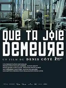 Joy of Man's Desiring (French: Que ta joie demeure) is a Canadian docudrama film, directed by Denis Côté and released in 2014.[1] The film explores people's relationship with work, through a staged depiction of a group of workers interacting with each other and their workplace.[2]