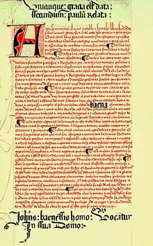 Not much is known of Juan Alfonso de Baena's life. However, it is known that Baena was born in the late 14th century in the town of Baena in Córdoba, Spain to Jewish parents.[1] According to research by José Manuel Nieto Cumplido, Baena's father was named Pero López and he grew up in the former Jewish quarter of Baena.[2] Other members of Baena's family, including his wife, children and nephew, were also uncovered during this research. Nieto Cumplido discovered that Baena's wife was called Elvira Fernández de Cárdenas, who was the daughter of Lope Ruiz de Cárdenas and María López de Luna.[3] Baena and his wife had at least two children, one also named Juan Alfonso de Baena and the second named Diego de Carmona.[4] Additionally, Baena's nephew (the son of Baena's brother Fernando Alonso de Baena), Antón de Montoro, was a fellow poet. Montoro was a used-clothes dealer called a ropero who also enjoyed wealthy patrons and used his talent at self-deprecating rhymes that highlighted his unfortunate appearance and Jewish blood.[5]