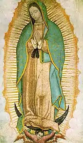 | Attributes | Tilma with the impressed image of the Virgin Mary, roses |