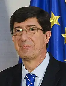 In the 2018 Andalusian regional election, Citizens rose to 21 seats and third place, forming government with the PP and supported by Vox. PP leader Juan Manuel Moreno became president and Marín the vice president in his government.[8] Marín was also Minister for Tourism, Regeneration, Justice and Local Administration.[9]