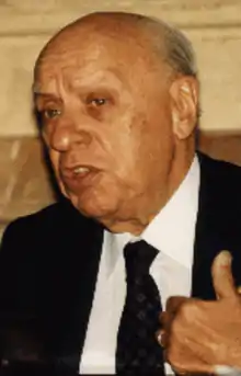 Juan Ramón Aguirre Lanari (August 20, 1920 – December 12, 2017) was an Argentine lawyer, diplomat, politician, and professor of constitutional law, who served as the Minister of Foreign Affairs from 1982 until 1983.[1][2] Aguirre Lanari was the last Foreign Minister of the National Reorganization Process before the end of Argentina's military dictatorship in 1983.[1] While not a member of the military, Aguirre Lanari saw his 1982 appointment to the Foreign Ministry as a way to guide the dictatorship towards a transition to democracy.[2] He accepted his assignment as Foreign Minister following assurances by President Reynaldo Bignone that new elections would be held by early 1984.[2] Following the defeat of Argentina in the Falklands War and the cessation of hostilities, Aguirre Lanari led international negotiations. He managed to get the United Nations to approve Resolution 37/9 in November 1982, which called on all parties to negotiate a solution to the Falkland Islands crisis.[1]