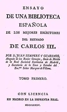 Juan Sempere y Guarinos (1754–1830) was a Spanish politician, jurist, bibliographer, economist and writer.