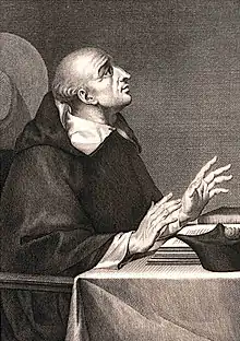 Juan de Torquemada was born in Valladolid, Spain.[1] “There is a general historical consensus that the family were former Jews“.[2] Though those converso origins are very often stated without providing any source,[3] they are “based primarily on Hernando del Pulgar’s statement that Juan de Torquemada’s abuelos were converts from the Jewish faith“.[2] As a converso, Pulgar is considered to have made this assertion out of hate for Juan de Torquemada’s nephew, Tomás de Torquemada.[4] However, through a study of all Juan de Torquemada’s ancestors no such jewish converts were found in his family.[5] At an early age he joined the Dominican Order, and soon distinguished himself for learning and devotion. In 1415 he accompanied the general of his order to the Council of Constance. Thereafter he proceeded to the University of Paris for study, and took his doctor's degree in theology in 1423. After teaching for some time in Paris, he became prior of the Dominican house in Valladolid, and then in Toledo.[6]