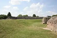 Jublains is mostly known for its "Roman camp", registered as a monument historique in 1840.[1] Even though a simple bourg replaced the Roman city, the remarkably well-preserved ruins make Jublains an exceptional site. The département of Mayenne decided to acquire several parcels of real estate, to allow research on the early residents of the commune.