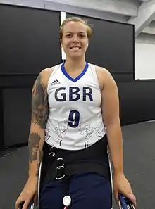 The idea of playing sport had not been uppermost in her mind, but in 2007 she became interested in wheelchair basketball. She attended a UK Sport Talent Day, and began playing for a local club in Exeter, the Otters in 2007, as a 4.0 point player. The Lord's Taverners gave her a £2,000 custom-made wheelchair basketball chair. in 2009, she made her international debut at the Paralympic World Cup.[4] She played with the national side at the European championships, at which they won bronze. They went on to win bronze again in 2011, 2013 and 2015.[2][3]