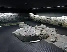 Originally scheduled to be finished on 9 November 1996, the 58th anniversary of Kristallnacht, the completion was delayed for four years due to various controversies both political and aesthetic, but also setbacks due to concerns over the archaeological excavations beneath the site.[4] The total costs paid by the city of Vienna were 160 million Schillings, including 8 million for the memorial by Rachel Whiteread, 15 million for planning, 23 million for the beginning of construction work, 40 million for structural measures for Misrachi-Haus, and 74 million for the archaeological viewing area.[5] The memorial was unveiled on 25 October 2000, one day before the Austrian national holiday. In attendance was the President of Austria Thomas Klestil, Mayor of Vienna Michael Häupl, President of the Israelitische Kultusgemeinde Wien Ariel Muzicant, Simon Wiesenthal, Rachel Whiteread, and further dignitaries and guests.[6]