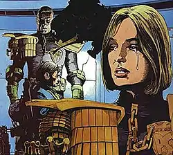 Anderson is prominent in her Division and gains Dredd's respect.[8] Unlike Dredd, she is a critic of the weaknesses in the judicial system of Mega-City One, has a sense of humour, forms personal friendships with fellow Judges, and permits herself doubt and remorse. However, she is still capable and willing like any Judge of using extreme or lethal force against anyone, men, women or children when necessary. Because her determination is similar to Dredd's, the two of them co-operate effectively on several missions.