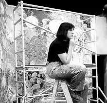 Judithe Hernández (born 1948)[3] is an American artist and educator, she is known as a muralist, pastel artist, and painter.[4] She a pioneer of the Chicano art movement and a former member of the art collective Los Four.[5] She is based in Los Angeles, California and previously lived in Chicago.[6][7]