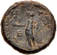 After their murder, all images of Empress Milonia and young Drusilla Minor were destroyed in hopes of making people forget they ever existed, as a sort of damnatio memoriae. Although these once did exist, no sculptures of Milonia and Drusilla survive.[10] Although other, more powerful motives caused the deaths of her parents, Drusilla's murder was only justified by her paternity: as Caligula's only legitimate child, she could have claimed the throne for her descendants or even for herself.[10] The only surviving image of Drusilla is a coin issued by Herod Agrippa the Great, King of the Jews, that represents Drusilla as a small child sitting next to Victory. The coin reads "to Drusilla, daughter of Augustus."[11][12]
