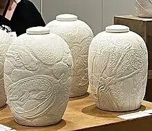 Influenced by Minoan ceramics, Sung and Tang dynasty court ware, as well as Persian miniature paintings, her work references human form and domestic architecture with form, and recalls floral patterning and organic decoration.[3]