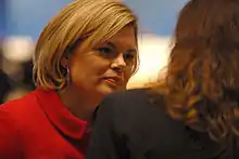 On 17 November 2009, Klöckner was proposed by the CDU chairman for Rhineland-Palatinate, Christian Baldauf, as the lead candidate for the 2011 state elections.[34] On 17 April 2010 she was duly elected as the CDU's front runner at the CDU state party conference in Bingen am Rhein with 400 out of 402 votes cast (99.5%).[35] On 25 September 2010 at the state party conference in Mainz, she was elected as leader of the Rhineland-Palatinate CDU with 96.9% of the vote.[36][37] On 4 December 2010 she achieved first place in the state list for the 2011 elections at the party conference of the Rhineland-Palatinate CDU Association in Ramstein-Miesenbach, gaining 99.6% of the votes.[38]
