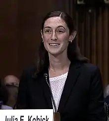 Julia Eleanor Kobick (born 1983)[1] is an American lawyer serving as deputy state solicitor in the Office of the Massachusetts Attorney General. She is the nominee to serve as a United States district judge of the United States District Court for the District of Massachusetts.[2]