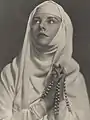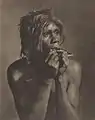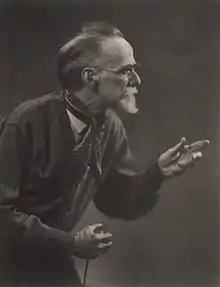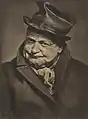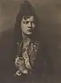 He was elected an honorary fellow of the Royal Photographic Society.[49] In his early history of the medium in Australia Jack Cato asserted that Smith "had no superior in any part of the world".[50] His portraits are in an outmoded Pictorialist style in a period of the emerging New Photography,[51][52] artistically lit with orchestrated, sometimes melodramatic, poses,[53] and printed with radical overexposure in pyrocatechin developer and bleaching-back with ferricyanide.[50] In his more contrived, but popular,[52] 'character study' tableaux the subject may be costumed as a protagonist from Dickens, Shakespeare, or from nursery rhymes.