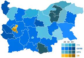 During the buildup to the April election, Borisov sought to increase his party's share of the rural vote, making campaign stops at small villages in the Rhodope Mountains.[7] The April election showed a clear divide between rural and urban areas of the country; towns favored established parties, while Sofia and other cities went predominantly for new opposition parties, including ITN.[8] Reporters predicted these trends would influence the July election as well.[8]