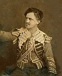 A persistent story, but apocryphal according to some sources, is that Junius Brutus Booth was acclaimed for performing Orestes in the French language in New Orleans. Theatrical manager Noah Ludlow, who was performing with Booth at the time at the American theatre there, recounts the actual events starting on page 230 of his memoir Dramatic Life As I Found It and concludes: "Therefore, I consider the story of Mr. Booth having performed Orestes in the French language, on the French stage, altogether a mistake arising from his having acted that character in the French theatre of New Orleans in 1822, but in the English language."[6] However, Stephen M. Archer notes that Ludlow was in Mobile, Alabama, in 1828, so was not present for this performance. The Folger Shakespeare Library in Washington, DC, has two playbills from the production and both are in French. Booth's daughter Asia wrote that her father spoke fluent French and cited a review on the subject. The review was not oblivious to the fact that Booth's French pronunciation was less than perfect, however.[7] In 1823, Booth did the role in New York in the English adaptation by Ambrose Philips with Mary Ann Duff as Hermione.