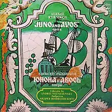 Juno and Avos (Russian: Юнона и Авось, Junona I Avos') is a popular Russian-language rock opera written by Alexey Rybnikov, poetry by Andrei Voznesensky. It was first performed in 1981 in the Lenkom Theatre, Moscow, directed by Mark Zakharov. Main roles in the premiere performed by Soviet stars Nikolai Karachentsov and Elena Shanina.