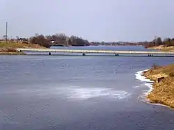 The Juodkiškiai Reservoir is an artificial lake in Kėdainiai District Municipality, central Lithuania. It is located 2 kilometres (1.2 mi) east from Kėdainiai, next to Taučiūnai village.[2] It was created in 1980, when a dam on the Obelis river had been built next to Juodkiškiai hamlet.[1] In 1995, the dam was reconstructed and a small hydroelectric plant (of 510 kW) has been built.