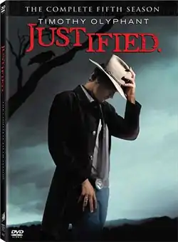 The fifth season of the American neo-Western[1] television series Justified premiered on January 7, 2014, on FX, and concluded on April 8, 2014, consisting of 13 episodes.[2] The series was developed by Graham Yost based on Elmore Leonard's novels Pronto and Riding the Rap and his short story "Fire in the Hole".[3] Its main character is Raylan Givens, a deputy U.S. Marshal. Timothy Olyphant portrays Givens, a tough federal lawman, enforcing his own brand of justice in his Kentucky hometown.[3] The series is set in the city of Lexington, Kentucky, and the hill country of eastern Kentucky, specifically in and around Harlan.[4] The fifth season was released on DVD and Blu-ray in region 1 on December 2, 2014.[5]