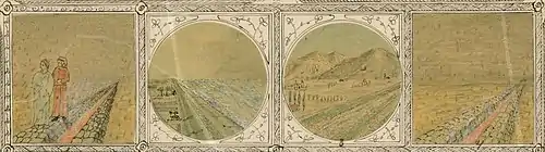The Dutch artist Jan Toorop (1858–1928) made the watercolour entitled 'Dante verheft de Ziel' (Dante lifts the soul) especially for Justine. The painting depicts Justine kneeling before Dante in divine admiration, with The divine Comedy under her arm. She used it for the cover of the Dutch edition of her book. The Dante portrait by Giotto (c. 1267–1337) she used to illustrate the interior of her Italian edition.